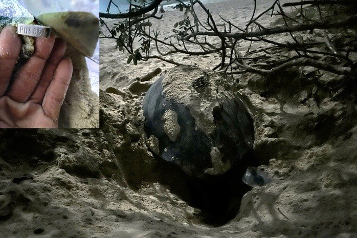 Cá thể rùa xanh có đeo thẻ đánh dấu của Philippines đã đến hòn Bảy Cạnh, Côn Đảo đẻ trứng lần hai. Trong lần mới nhất, nó đẻ 88 trứng.