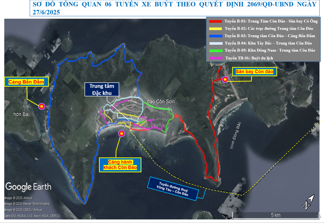 Sơ đồ 6 tuyến xe buýt điện sẽ hoạt động ở đặc khu Côn Đảo