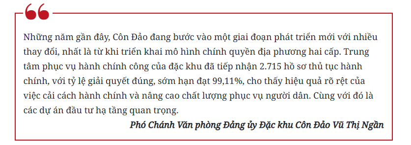 “Những thay đổi ấy đang góp phần tạo nên một diện mạo mới cho Côn Đảo, hiện đại hơn, thuận tiện hơn, nhưng vẫn giữ được sự bình yên vốn có”, đồng chí Lê Hoàng Hải chia sẻ thêm.