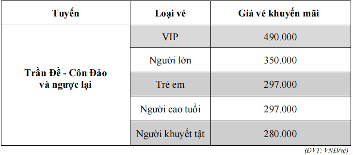 Công ty cổ phần Tàu Cao tốc Phú Quốc thông báo đến Quý Đối tác và Quý Khách hàng chương trình “Lướt sóng đầu năm, giá rẻ hết ý”: Giảm giá vé tuyến Trần Đề - Côn Đảo và chiều ngược lại, áp dụng từ ngày 02/01/2026 đến hết ngày 31/01/2026 cho tất cả các ngày trong tuần, cụ thể như sau: